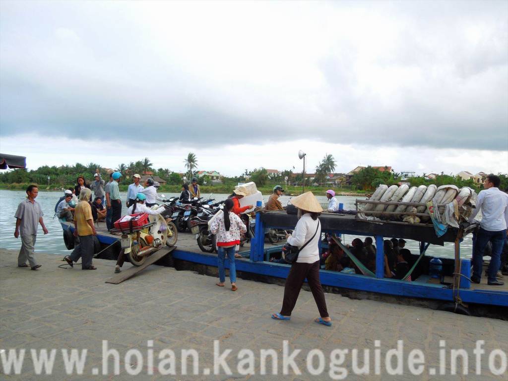 船がバクダン通りに着くと、人々はバイクや自転車ごと船に乗ります。もちろんお金さえ払えば観光客も乗ることができます。
