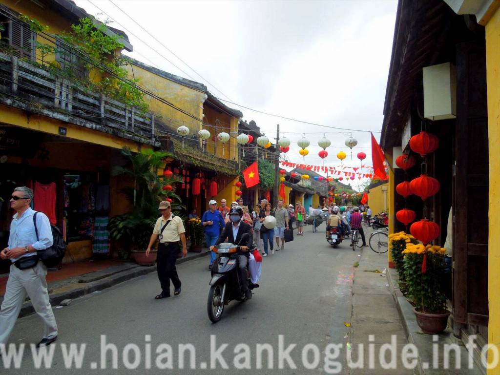 チャンフー通りはホイアンの歴史保護地区の中心を通るめぬき通りです。